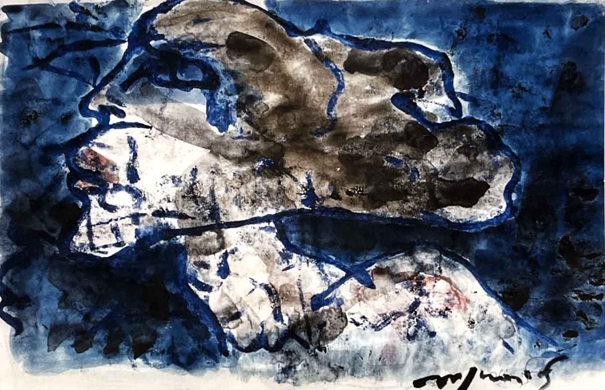 5. Testa in blu – Tecnica mista – 20×30